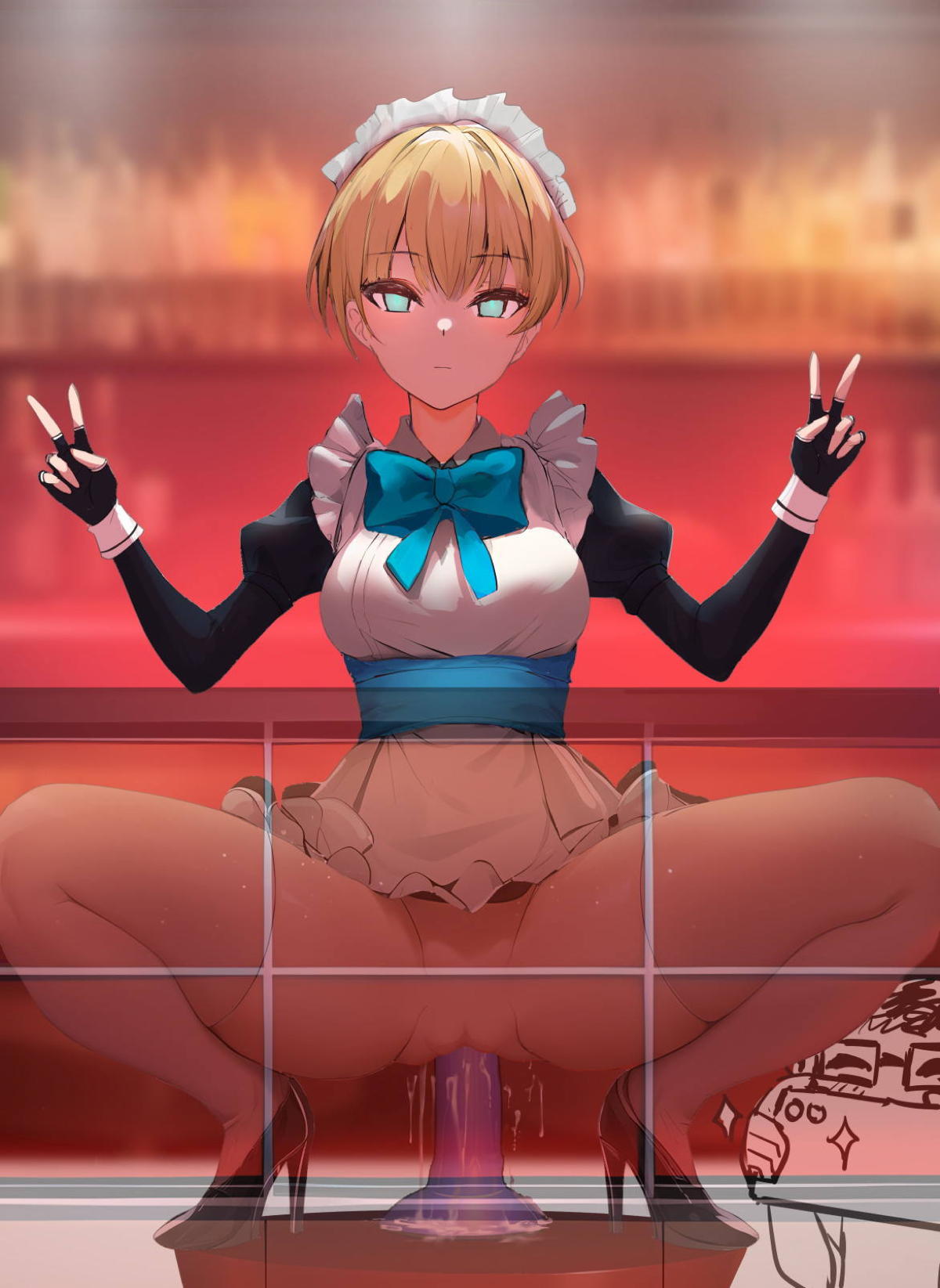 ダブルピースしているバニートキにザー◯ンをぶっかけちゃう♡