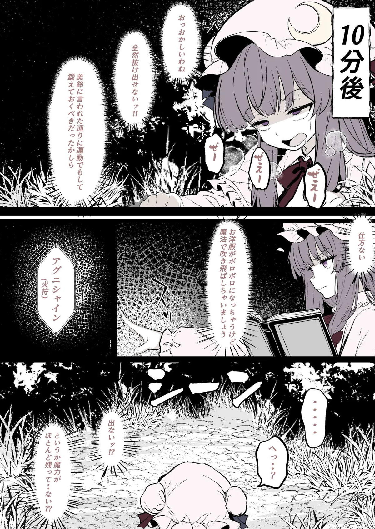パチュリーが穴にはまって触手に種付けされちゃう漫画